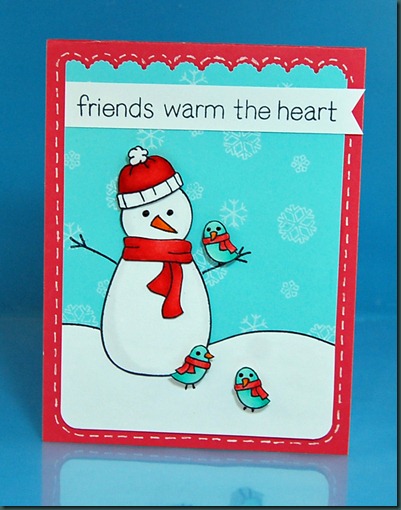 My project posted above uses one of my favorite Lawn Fawn sets, Making Frosty Friends. I adore this set. And I love red and aqua together.